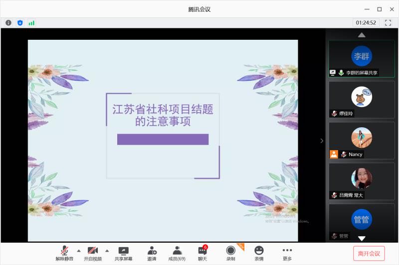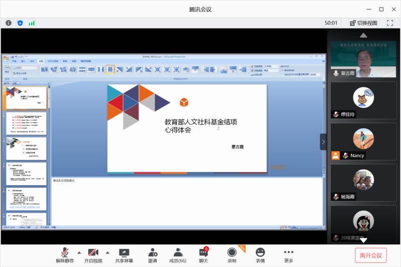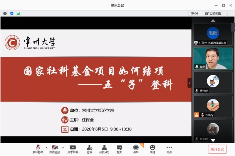 为进一步营造良好的科研氛围,帮助教师充分利用“暑期科研黄金期”来推进基金项目研究和结项工作,常州大学商学院于8月5日上午在“云端”举行第4期青年学术沙龙。本次沙龙主题是“社科类科研项目结项经验与技巧”,由经济学院任保全博士、商学院葛吉霞和李群博士担任主讲嘉宾,校内多个文科学院的70余名教师参加沙龙。沙龙由商学院副院长彭伟主持。 任保全博士结合自己开展国家社科基金项目研究和结项的经历,从“扣好扣子、戴好帽子、穿好鞋子、常照镜子、筑牢里子”等五个方面全面细致地分享了国家社科基金项目研究与结项的技巧。随后,葛吉霞博士结合自己开展教育部人文社科基金项目研究与结项的经历,从“预期成果的选择、有序推进课题研究、成果结项申请”等三个方面,深入分享了教育部人文社科基金项目结项的心得体会。李群博士结合自己开展江苏省社科项目研究与结项的经历,分享了江苏省社科项目结题的注意事项与技巧,并就如何成功结题做了精彩的示例讲解。最后,彭伟博士对本次沙龙做了总结,并就项目研究与结项工作谈了三点体会:一要提高认识的高度,要将基金项目立项、研究与结项放在自己的学术生涯规划和职业成长规划的高度来认识,把握时间节点,按时优质完成项目研究工作;二是要提高研究的深度,充分利用假期时间,将项目申报书中的核心研究内容做实、做细、做深;三是要提高成果的厚度,要珍惜每次科研基金项目立项的宝贵机会,发表高质量的学术成果,这样才能有助于在结项工作中赢得主动权。 历时将近2个小时的线上学术沙龙主题明确、内容丰富,让与会教师对社科类科研项目结项的技巧有了更加深入的理解和感悟,对社科基金项目研究与结项工作的顺利推进大有裨益。 任保全学术简介:南京大学应用经济学博士,常州大学经济学院副教授、硕士生导师,主要研究领域为产业组织、产业转型升级,先后主持承担国家社科基金青年项目1项,国家社科基金一般项目1项,江苏省软科学项目1项及市厅级项目10余项,在《数量经济技术经济研究》、《经济学家》、《财经科学》、《国际经贸探索》等期刊发表论文10余篇,其中《人大复印资料》全文转载4篇。 葛吉霞学术简介:南京大学历史学博士,常州大学商学院副教授、硕士生导师,主要研究领域为近代中国商业史,先后主持承担常州市创名软件工程项目、教育部人文社科青年基金、江苏省社科基金、国家社科基金,在《上海经济研究》、《江西社会科学》、《Economic History of Developing Regions》等期刊发表论文20余篇。 李群学术简介:南京大学管理学博士,常州大学商学院副教授、硕士生导师,主要研究领域为人力资源管理与组织行为学,先后主持承担国家社科基金重点项目1项、国家社科基金一般项目1项、江苏省社科基金一般项目1项以及多项市厅级项目,在《管理工程学报》、《管理学报》等国内知名期刊发表论文10余篇。