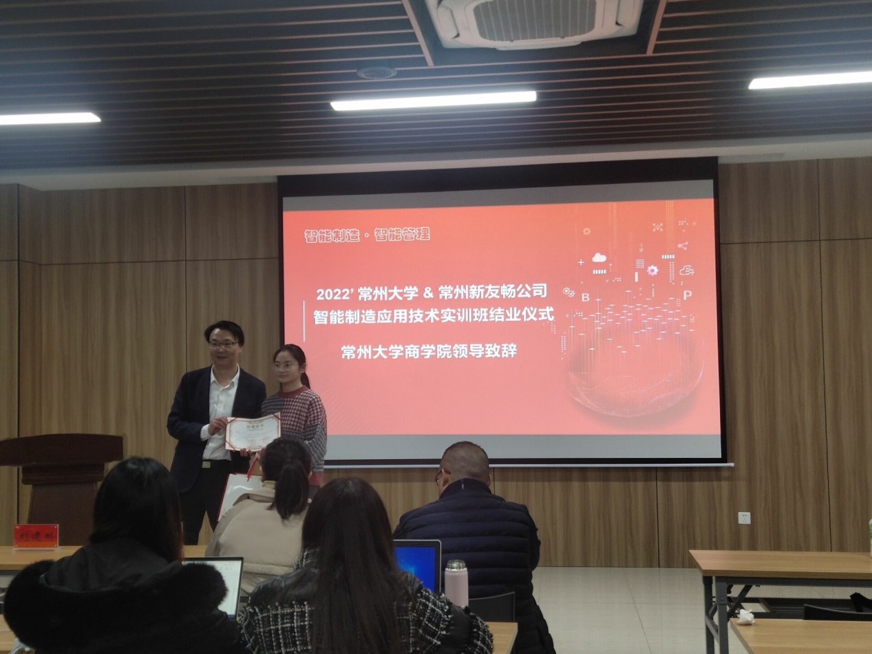 | 锤炼自我,共赢未来——常州大学商学院、刘国钧管理学院合作常州新友畅信息技术有限公司第一届智能制造应用技术实训班结业仪式圆满结束 |