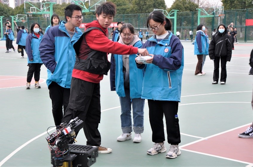 活动中,林方毅寄语同学们立鸿鹄之志,树远大理想,争做新时代的大成青年,怀感恩之心,奋勇向前,在逐梦中绽放属于自己的青春华光。 讲座结束后,常州大学学生社团向省武高学生展示了自主制造的机器人与无人机,现场吸引了众多中学生前来围观,并亲身体验了机器人的操作。