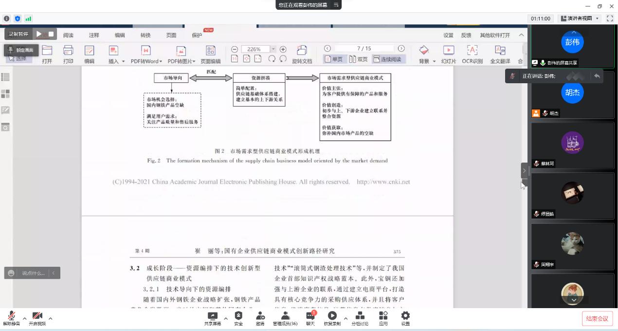 为规范推进商学院MEM研究生高质量研究报告撰写,做好为学生答疑解惑工作,商学院于4月19日晚上在腾讯会议举行了第16期研究生知行论坛。论坛主题为“MEM高质量研究报告撰写要领”,由彭伟老师担任主讲嘉宾,商学院39名MEM研究生参加此次论坛。 彭老师针对学生不同类型的工作岗位,整理出四大类研究报告参考文献,带领学生分析解读其中的写作思路和逻辑,详细讲解了撰写高质量研究报告的写作规范与注意事项,为规范撰写高质量研究报告提供了建议。随后,彭老师与学生进行了互动交流,就同学们的疑问耐心地进行了解答,此次论坛干货满满,不仅为规范高质量研究报告提出了指导性的建议与帮助,也为提升研究生论文质量提出了建设性的指导。 本次论坛历时将近2个小时,论坛内容充实、成效显著,使商学院研究生深入系统地学习了高质量研究报告写作的相关注意事项,有助于商学院研究生规范高质量研究报告的撰写、提升学位论文质量。