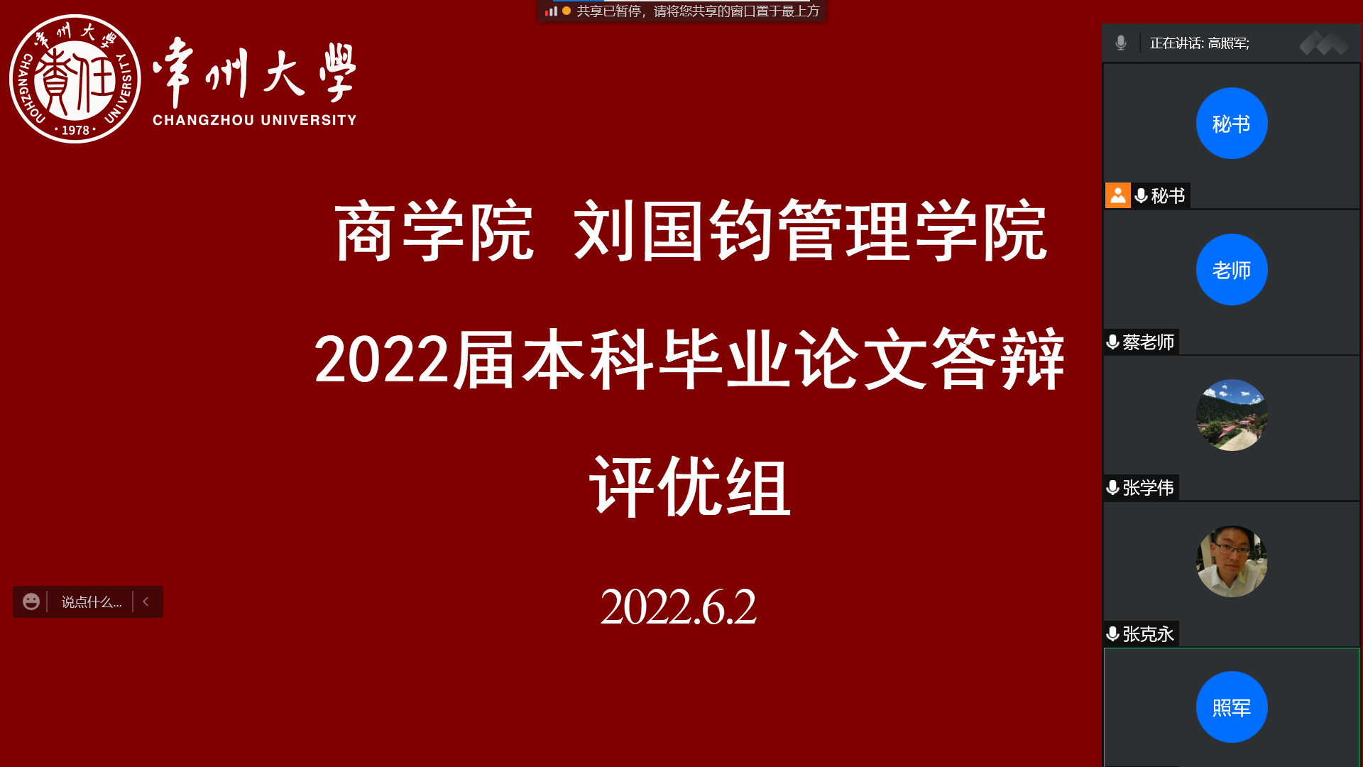 2022年6月2日下午,商学院刘国钧管理学院通过腾讯会议的形式举办了2022届学生毕业论文院答辩会。按照学院统一安排,进入院答辩学生由各专业根据系答辩情况推选,共32位学生参加院答辩会,分为两组进行,一组是终审组,一组为评优组。 为保障学院毕业论文质量,对于存在问题的论文,根据情况程度的不同,院答辩委员会分别做出了修改通过、限期整改等不同的结论,同时要求指导教师高度重视毕业论文工作,严把论文质量关,指导学生对论文反复修改和推敲,使学生的毕业论文质量得到不断的提高。