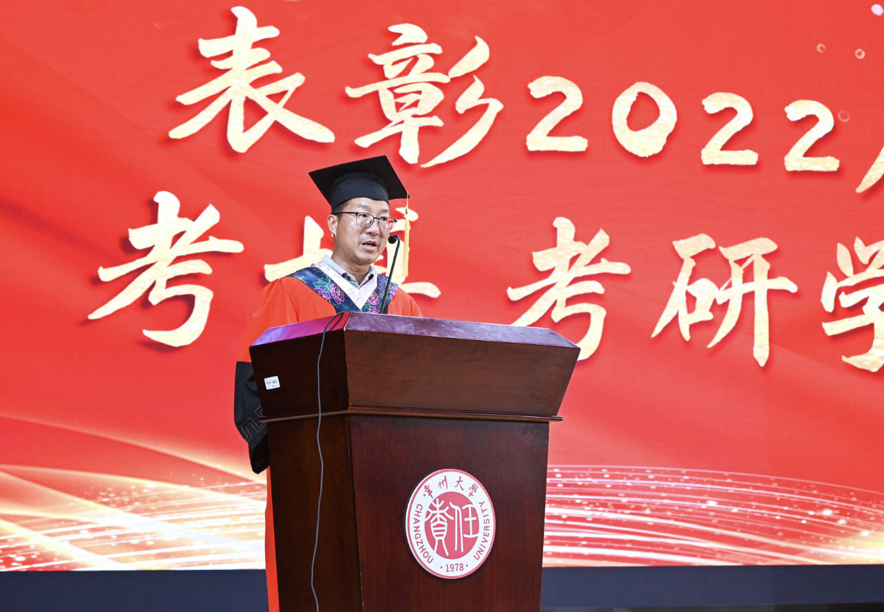 商学院院长助理徐光伟宣读优秀考博、考研学生表彰决定,党委书记江涛涛、院长佟金萍、梦百合常州总经理陈岳琴为2022届优秀考博、考研学生颁奖,梦百合公司为53名学生提供考博、考研奖品。