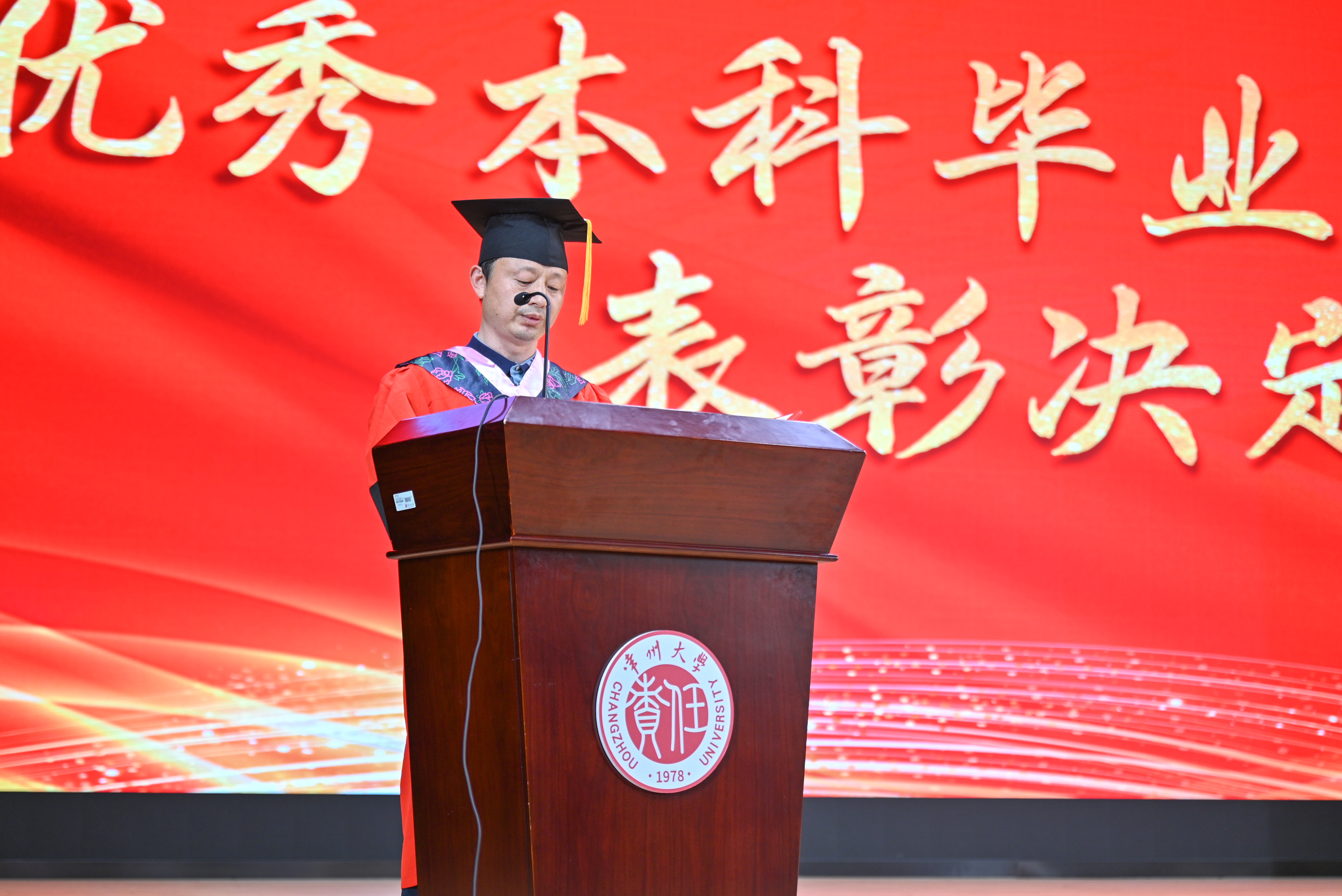常州大学副校长张宏如、商学院教师代表为商学院2022届毕业研究生代表、毕业本科生代表授予学位。