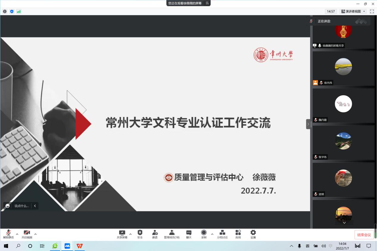 2022年7月7日下午,学院邀请质量管理与评估中心徐薇薇主任指导文科专业认证。院长佟金萍、院长助理徐光伟、会计专业和人力资源管理专业主任和负责人以及骨干教师参加线上会议。 徐薇薇主任从专业认证历程、专业认证程序、专业认证标准、认证工作方式、认证核心问题、关于自评报告六个方面详细讲解了学校文科专业认证工作。文科专业认证通用标准指标项包括培养目标、毕业要求、课程体系、师资队伍、支持条件、质量保障、学生发展、特色项目(7项、33条、1自选)。专业认证的底线是初步形成以持续改进为目标的内部面向产出的评价机制。专业认证的关键在于指标点(观测点)的分解。徐薇薇主任还针对自评报告中的共性主要问题与难点进行了细致地分析和讲解。针对文科专业认证中存在的问题,关键在于“以评促建”,按照文科专业认证标准建立健全评价机制。 佟金萍院长最后总结指出文科专业认证是一项新的工作,希望会计专业和人力资源管理专业以此为契机推进教育面向产出,持续改进按照培养目标培养合格毕业生。