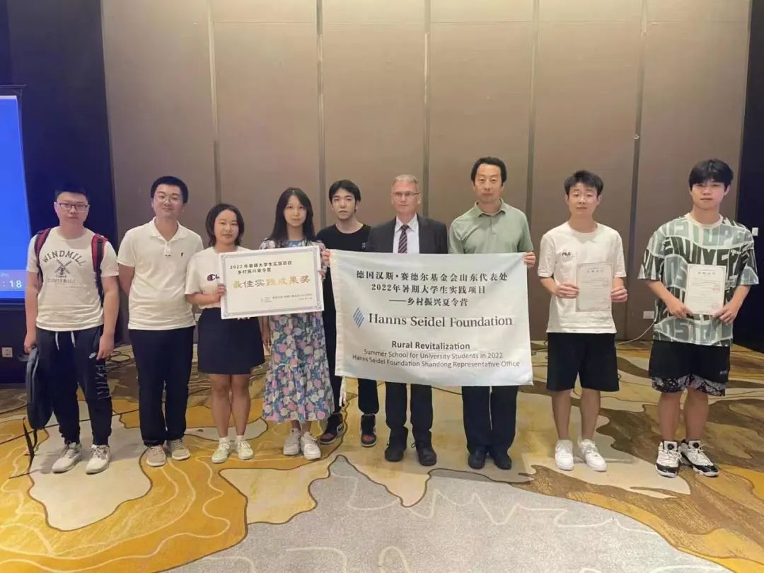 本次活动中,常大学生作为小组长,注重与来自全国各地大学参营师生合作交流,信息共享,带领小组成员深入实践,踊跃与德国专家面谈,努力为乡村振兴贡献出自己的力量。同学们认真和努力得到了回报,在夏令营的课题小组成果汇报及评选中,常州大学代表所在的队伍表现优异,拔得头筹,荣获“2022年暑期大学生实践项目——乡村振兴夏令营最佳实践成果奖”。
