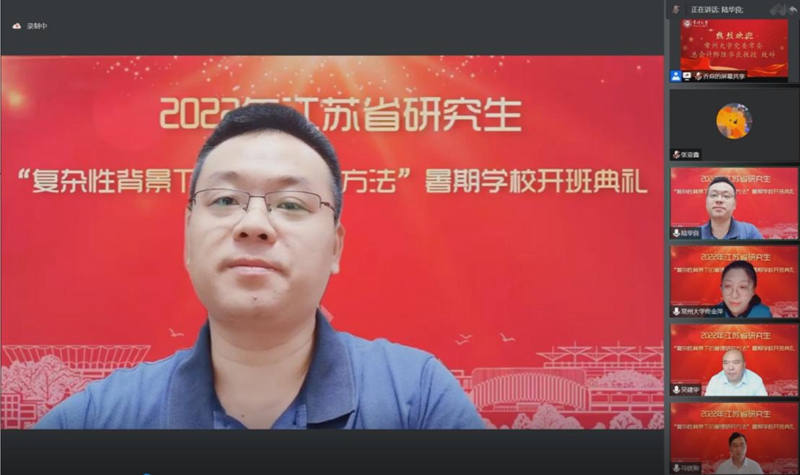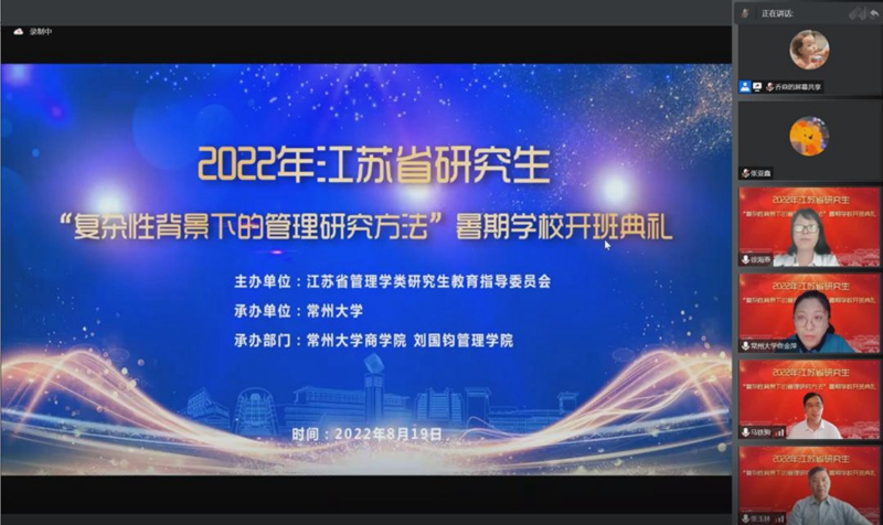 2022年8月19日下午,2022年江苏省研究生“复杂性背景下的管理研究方法”暑期学校开班典礼在常州大学举行。本次暑期学校由江苏省管理学类研究生教育指导委员会主办,常州大学商学院承办。