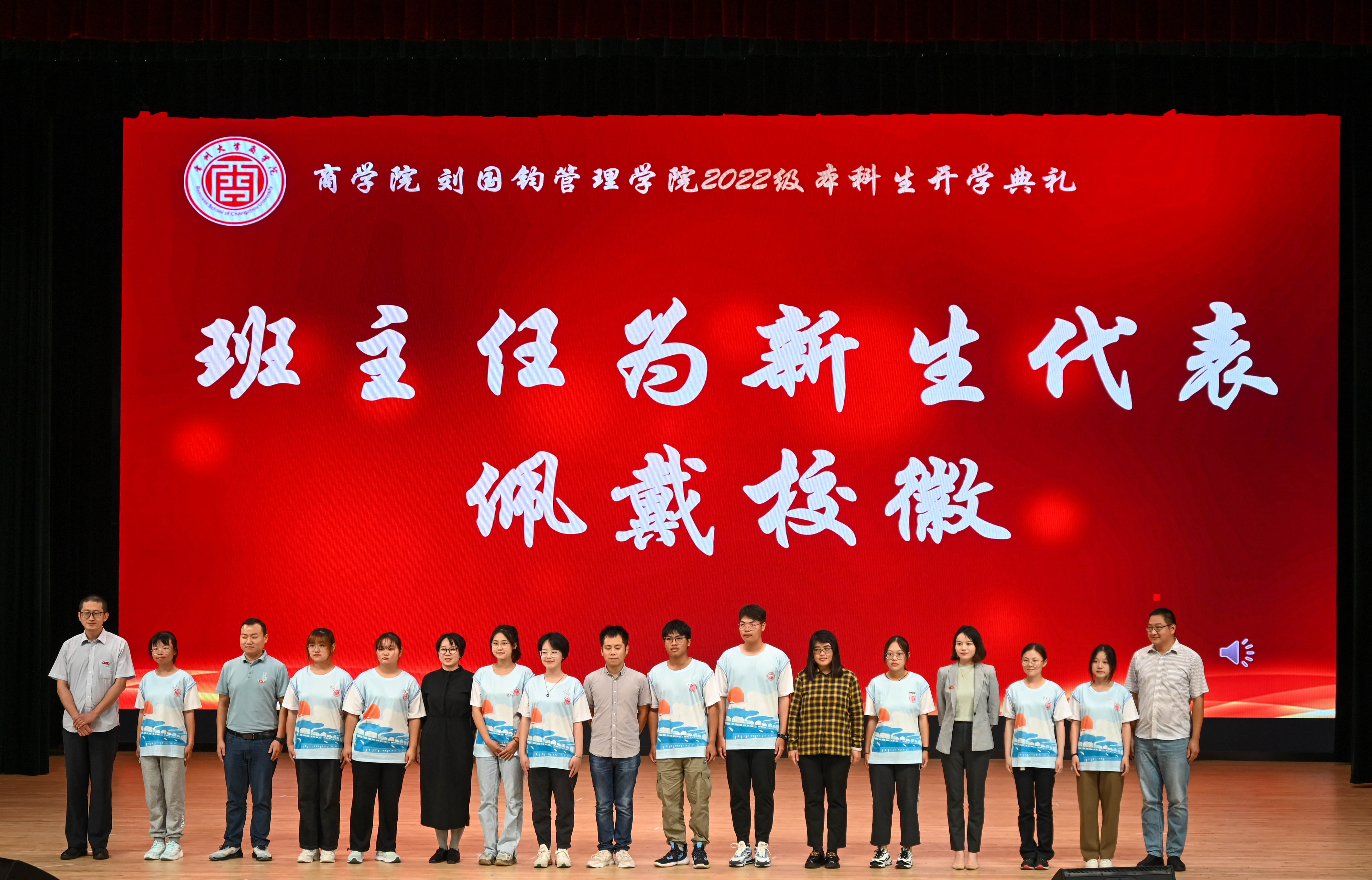 商学院系主任寄语 校徽不仅仅是一枚徽章,更是一份集体责任的象征。各班班主任为新生代表佩戴校徽。戴上校徽之后,心中有了归属,脚下便有了力量。