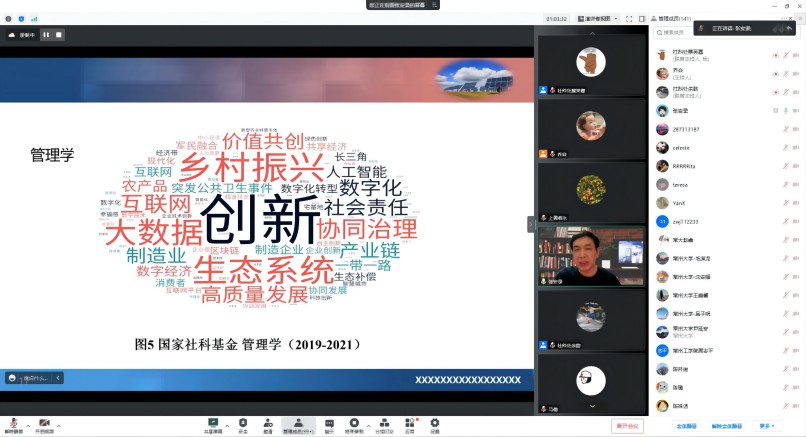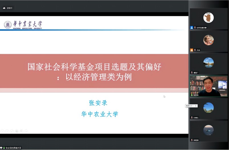 会上,张安录教授主要从国家社科基金项目申报渠道、近年来资助情况、选题的统计计量分析、选题体会、选题建议等五个方面详细介绍了国家社科基金经管类选题偏好和趋势,同时,张教授还结合学习党的二十大报告精神,指出了未来一段时期经管类学科值得关注的研究热点与前沿。本次讲座不仅提高了教师的申报积极性,增强了科研信心,也为教师们今后进一步凝练选题,优化研究思路提供了有益的指导。