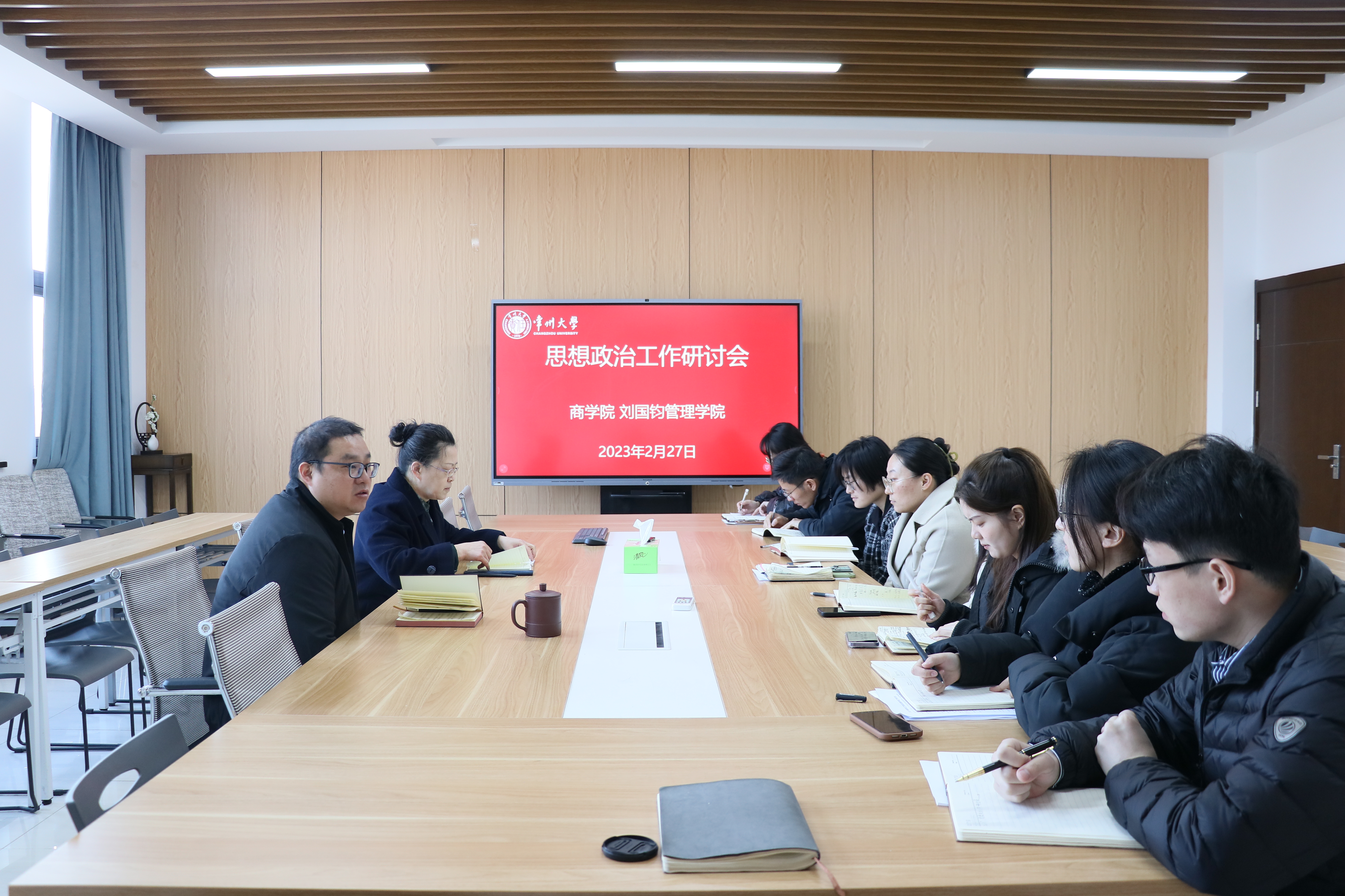 为深入推进培根铸魂、立德树人工作,我院于2月27日在立言楼321会议室召开党建思想政治工作专题会议,党委书记江涛涛、党委副书记林方毅及全体辅导员参加会议。会议由林方毅主持。 会上,全体辅导员围绕推进党建思想政治工作与业务工作双融合双促进、打造党团精品项目、党建引领双创工作等方面做了工作汇报,并就如何做好学生的党建思想政治工作交流发言。江涛涛在总结发言中强调,党建思想政治工作是学生工作的灵魂,辅导员在实际工作中要注重将党建思想政治工作与学风建设、考研就业、支部建设、自身队伍建设等核心工作相融合,充分发挥党建思政的示范引领作用,发挥党员的先锋模范作用,不断推进党建思想政治工作与业务工作深度融合、高度契合,打造商科思政新亮点。 学院高度重视党建思想政治工作,紧密结合育人中心工作,积极探索党建思想政治工作新方式,提升学院立德树人新高度。