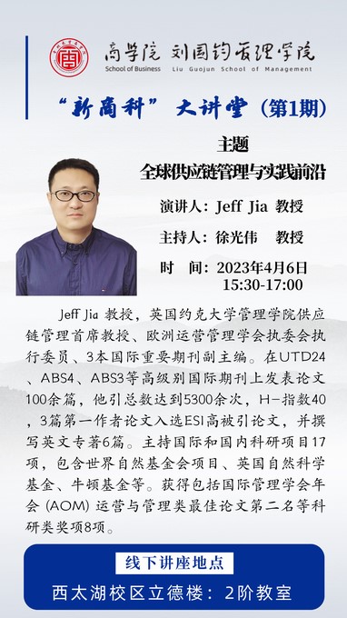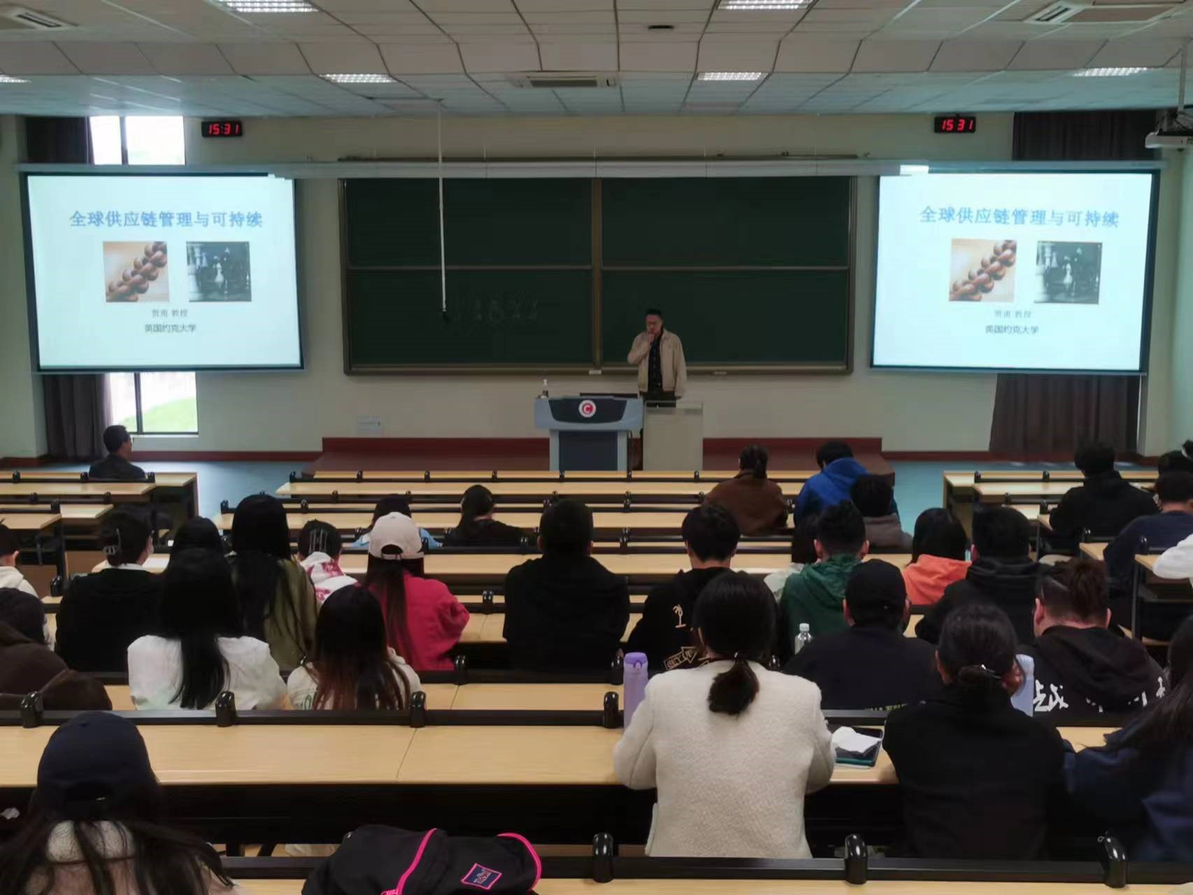 4月6日下午,学院邀请英国约克大学管理学院供应链管理首席教授贾莆博士为各年级同学做线下讲座。副院长林栋、徐光伟主持讲座,学院百余位师生线下参与。 贾莆教授是欧洲运营管理学会执委会执行委员、3本国际重要期刊副主编。在UTD24、ABS4、ABS3等高级别国际期刊上发表论文100余篇,他引总数达到5300余次, 3篇第一作者论文入选ESI高被引论文,并撰写英文专著6篇。主持国际和国内科研项目17项,包含世界自然基金会项目、英国自然科学基金、牛顿基金等。获得包括国际管理学会年会 (AOM) 运营与管理类最佳论文第二名等科研类奖项8项。 贾教授结合全球物流供应链发展大势以及中国提出的“双碳”战略背景,对世界前沿的研究方向进行了深入浅出的系统讲解,并结合利乐包装的实践案例,探索了未来中国供应链转型之路。会后贾教授还与同学们展开了精彩的问题互动。