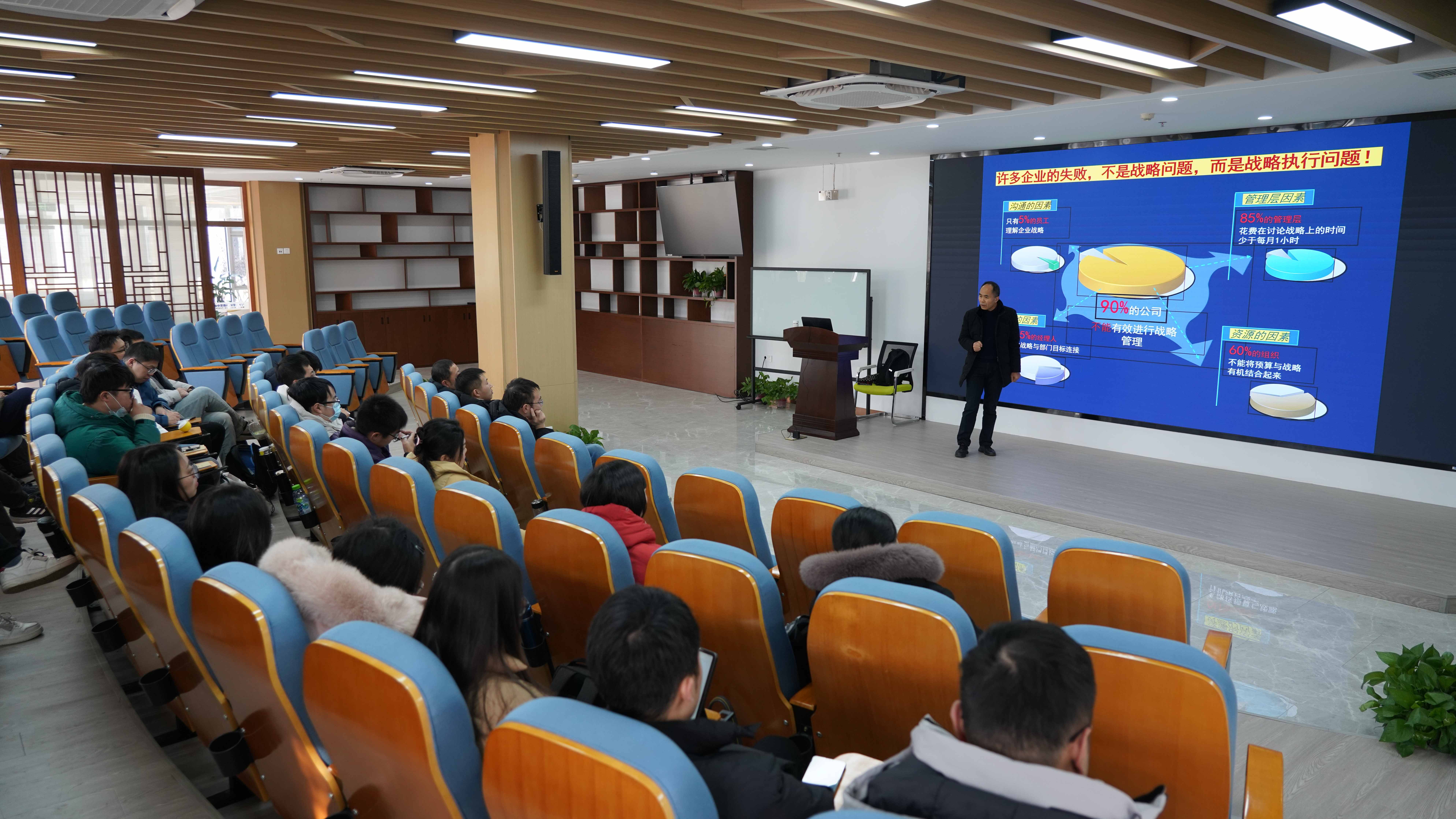 为帮助同学们深入理解执行力在管理中的重要性,学习如何在实际工作中提升执行力能力,12月23日,商学院 刘国钧管理学院邀请中国计量大学经济与管理学院郭本海教授开设以“管理中的执行力”为主题的讲座,2023级MBA、MEM所有同学参加讲座,讲座由副院长刘建刚主持。 郭本海教授详细讲解了执行力的概念及其在管理工作中的作用,他强调执行力是一个团队或者个人落实计划、实现目标的能力,是成功的关键因素之一。他又以经典案例主线,结合自身工作经验,对执行力不佳的表现、执行力不佳的原因及如何有效提升执行力等问题进行了深入分析,引导同学们认识到执行力在日常工作中的实际应用和价值。(通讯员/王怡菲 审核/刘建刚)