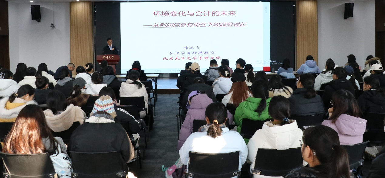 12月17日上午,北京大学陆正飞教授应邀在立言楼458多功能会议室作题为《环境变化与会计的未来——从利润信息有用性下降趋势说起》的讲座,学院近百名师生参加。常州大学原副校长王卫星主持讲座。 讲座伊始,王卫星对陆正飞教授的到来表示欢迎。陆正飞教授借助生动的案例,提出了他对会计领域发展的思考,他语言诙谐幽默,金句频出,高屋建瓴地提出了未来会计的发展方向。他指出,未来资产负债表将越发重要,表外信息披露将越发重要,理解数字背后的商业将越发重要,基本面与大数据分析的结合将越发重要,较之会计实务经验、会计理论将越发重要。学院师生纷纷表示受益匪浅。 此次讲座为学院师生提供了宝贵的学习机会,对学院人才培养和会计学科高质量发展起到了促进作用。(通讯员/郭梦梦 审核/龙涌澜)