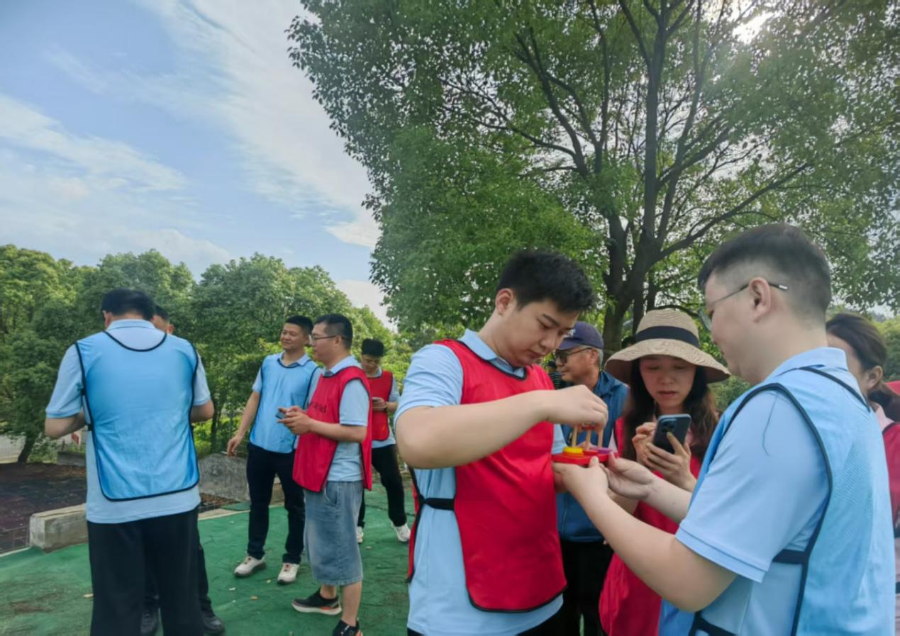 智慧交锋,双重锤炼 首项挑战为“汉诺塔”项目,模拟企业资源调度场景,要求团队在限定时间内完成五层圆盘的精准转移。学员们分工明确:有人担任“策略规划师”推演步骤,有人化身“执行督导”确保零失误操作。通过多轮试错与总结优化,学员们在紧张有序中锤炼逻辑思维与沟通能力,实现高效协同。