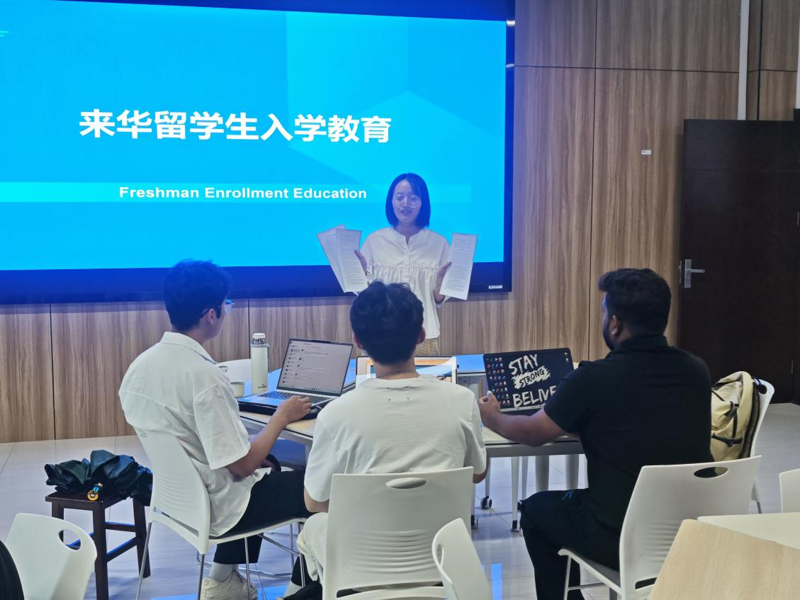 为帮助新生尽快适应在华学习生活,深入了解中国法律法规与校纪校规,近日,学院在立言楼305室开展2025级来华留学生入学教育。 会上,留学生辅导员郑伟详细介绍了学院历史、专业设置及教学管理规定,并就签证办理、住宿管理、安全须知等关键事项进行了重点解读,强调了遵守中国法律和校规校纪的重要性。 学院将持续为来华留学生提供全方位的支持与服务,助力培养知华、友华、爱华的优秀学子。(通讯员/王怡菲 审核/王彩芳) |