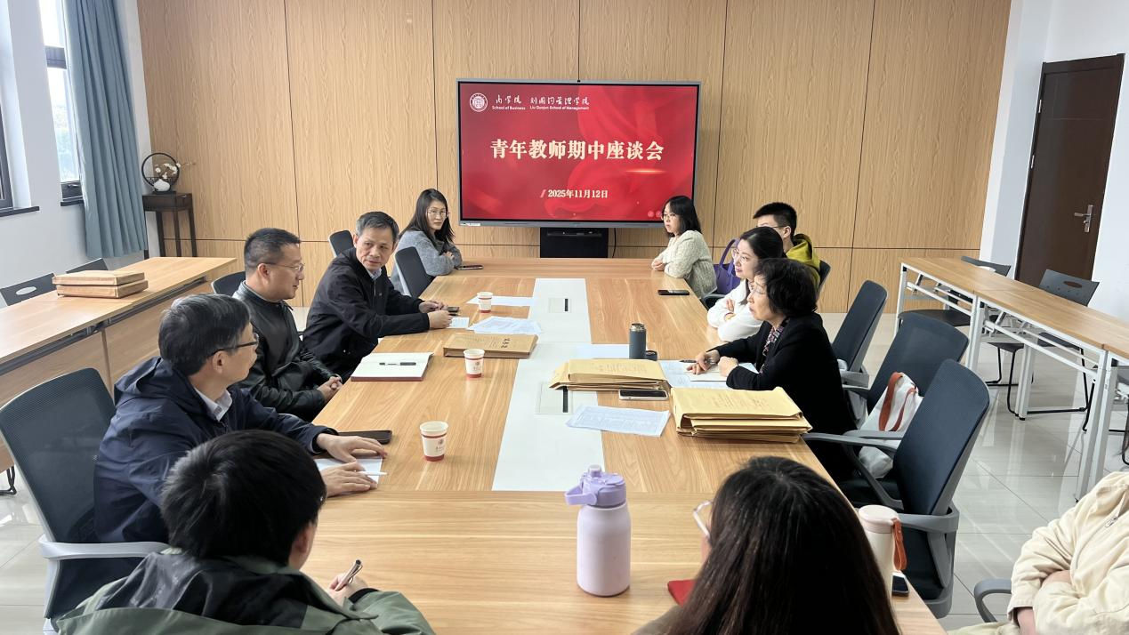 11月12日上午,商学院青年教师期中座谈会在立言楼321会议室顺利举行。校督导王卫星、李启平、杨月坤莅临指导,副院长徐光伟主持会议,学院青年教师代表参加座谈。 会上,徐光伟结合期中教学检查情况,点明此次座谈会旨在“精准对接需求、助力青年成长”,引导青年教师敞开心扉交流。青年教师围绕教学节奏把控、科研方向选择、师生沟通技巧等问题积极提问,分享工作中的实际困惑。校督导杨月坤率先结合检查细节发言,他先肯定了青年教师在课件制作、课堂互动设计上的明显进步,随后针对部分教师存在的“教学重点不够突出”“学情分析不够深入”等问题提出具体改进方向;李启平聚焦青年教师的成长需求,从“深耕专业领域”“平衡教学与科研”等方面给出实用建议,为青年教师规划成长路径;最后,校督导王卫星进行总发言,她强调青年教师的活力与思考是课堂的宝贵财富,以“青年教师是教学创新的生力军”为核心激励大家将此次座谈的收获转化为教学动力,勇于尝试、大胆突破,在教学岗位上快速成长。 青年教师们踊跃发言,就教学实践中的困惑、科研方向的探索等问题与督导及院领导深入交流。此次座谈会为青年教师搭建了沟通提升的平台,对助力青年教师成长、夯实学院教学质量起到积极推动作用。(通讯员/郭梦梦 审核/龙涌澜)