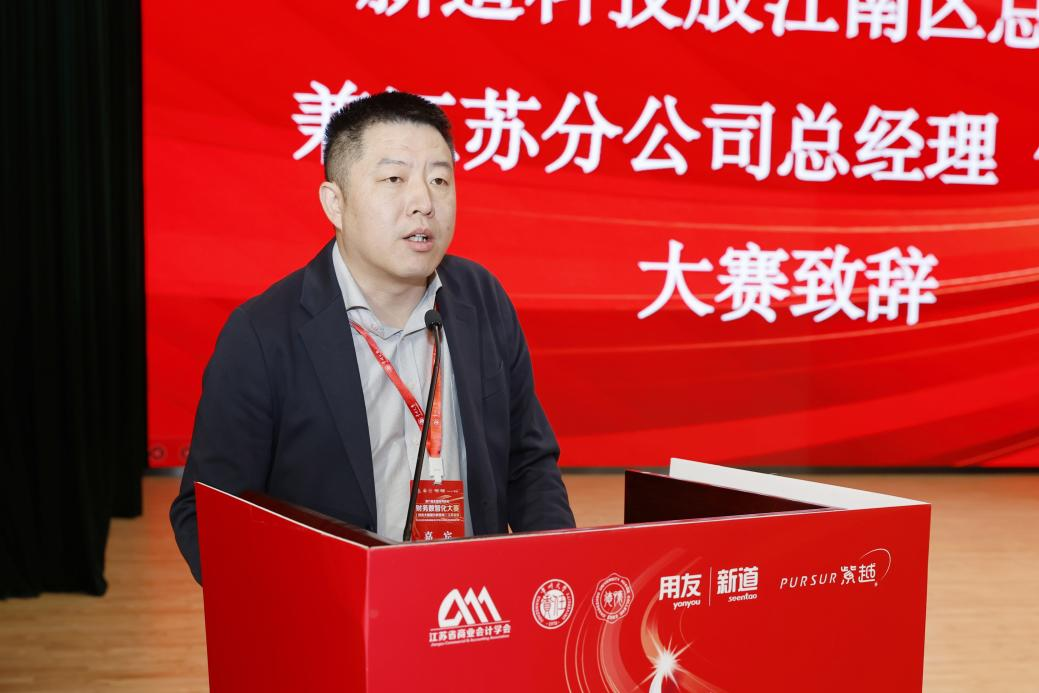 常州大学党委常委副校长杨琳致辞 新道科技江南区总经理兼江苏分公司总经理任子宜在致辞中指出,通过大赛能让学生以实践为帆、创新为舵,结合所学的专业知识,融合新一代数智技术的理念、工具和方法,站在未来看现在,积极顺应内外部环境变化,为企业高质量发展与价值创造贡献智慧。他表示,新道科技将不断丰富和完善数智财经赛项的平台、内容和形式,通过以赛促学、以赛促课,帮助院校加快推进和落实数智化应用人才、数智化技术人才、数智化管理人才、数智化创新人才的培养。