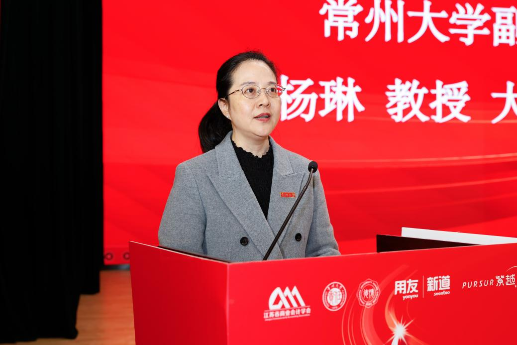 常州大学商学院党委书记龙涌澜主持开幕式 开幕式上,常州大学党委常委、副校长杨琳首先致辞。她指出,常州大学以“责任”为校训,秉承“勇担责任,追求卓越”的学校精神和“以人为美、育人为本,开放办学、协同发展”的办学理念,红色文化、创新创业、石油石化三大办学特色不断彰显,积极培养具有理想信念、爱国情怀、科学精神、协作品质、国际视野的服务国家经济社会发展的高素质创新型人才。希望通过本次大赛,汇聚各方力量,共同探讨财务数智化的发展趋势,分享最新研究成果和实践经验,为推动行业进步贡献智慧和力量。
