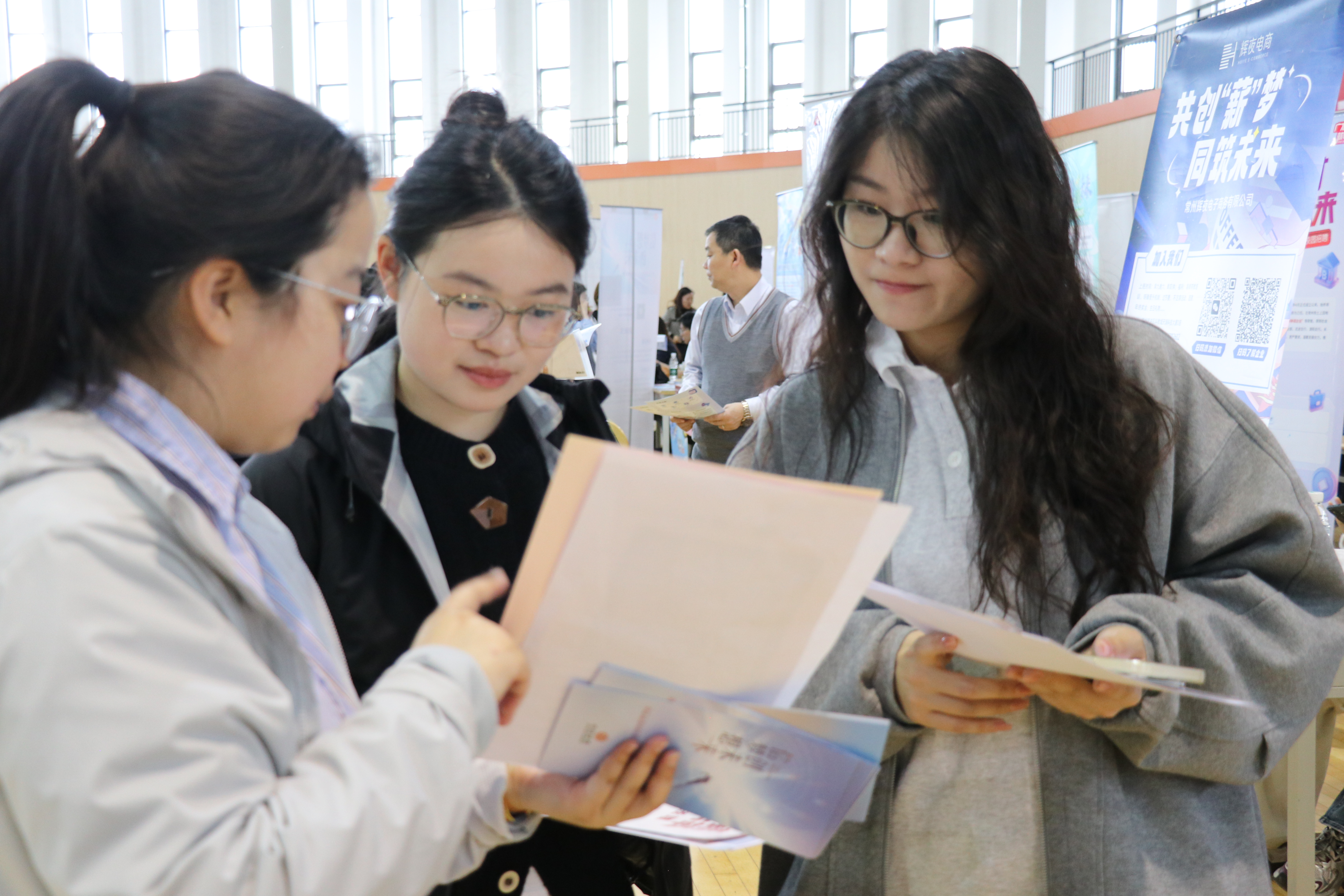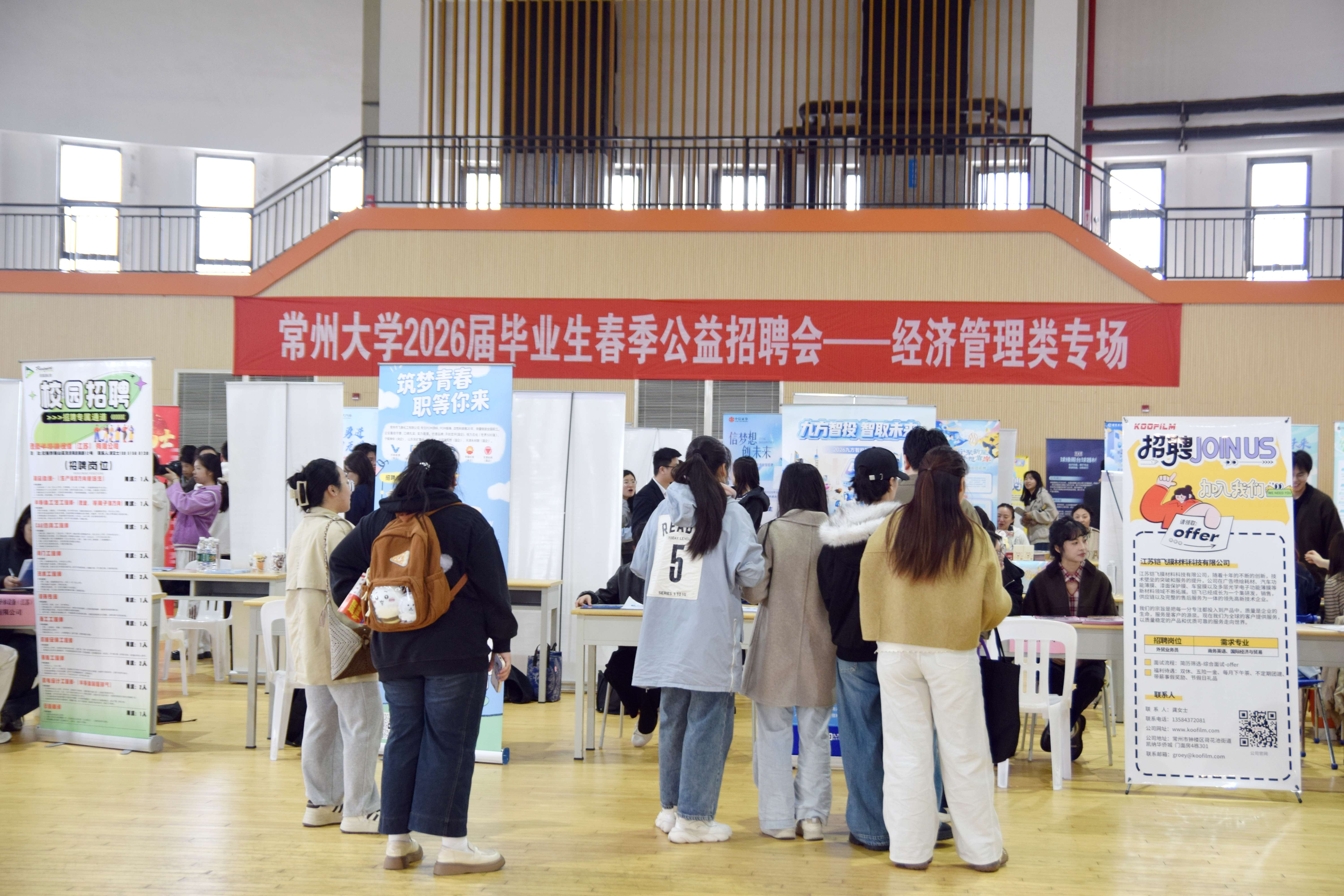 为促进2026届毕业生高质量就业,深化校企精准对接,4月8日,商学院与吴敬琏经济学院在西太湖校区滆湖体育馆二楼联合举办经济管理类专场招聘会。学院党委书记龙涌澜、党委副书记王彩芳到场指导,与用人单位和学生深入交流,了解用人单位需求。 本次招聘会紧扣经济管理类专业方向与市场需求,聚焦市场营销、电子商务、人力资源、物流管理等经管优势领域,吸纳包括中天钢铁、国联证券、招商银行等在内的100余家用人单位参展,提供了包括运营经理、管培生、营销顾问在内的优质就业岗位800余个,充分满足毕业生多元化、个性化就业需求。江苏晋陵文旅发展有限公司在现场设置展位,对“毗邻胜境十二景”进行宣传,并为常大师生提供“畅玩老城厢”优惠权益,吸引更多大学生留常就业。 招聘会现场特别设立就业服务站,由常州大学“圆梦职引”辅导员工作室提供全流程就业指导,帮助学生深度解析岗位技能图谱,提供一对一简历优化建议,发放定制化求职手册,助力毕业生精准匹配岗位,提升求职竞争力。 此次招聘会是学院落实“稳就业”“保就业”的重要举措。未来,学院将持续优化就业服务体系,拓展校企合作维度,为毕业生提供广阔择业平台,推动人才供给与产业需求的精准耦合。(通讯员/王怡菲 审核/龙涌澜)
